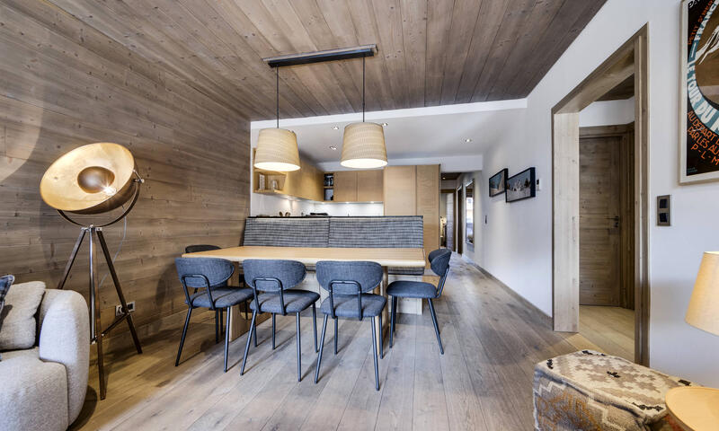 Appartement 4 pièces cabine de 110 m² équipé pour 8 personnes. Situé au 1er étage de la résidence Cygnaski, l'appartement n°5 est à seulement 350m du centre de Val d'Isère.