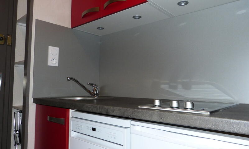 La cuisine, située dans l'entrée, est équipée d'un four micro-ondes, de 2 plaques vitrocéramiques, d'un réfrigérateur top, d'un lave-vaisselle et d'un appareil à raclette.