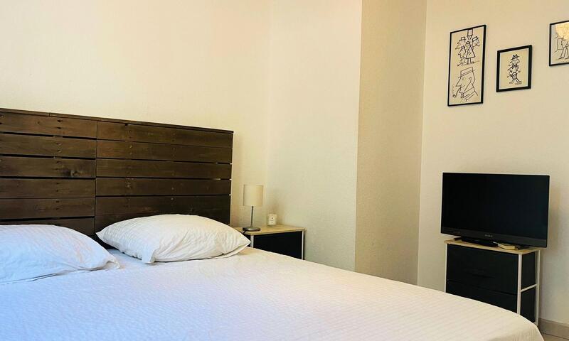 L'appartement, est composé d'une cuisine équipée, d'un grand salon climatisé, d'une salle d'eau, d'un WC indépendant, d'une première chambre climatisée avec un lit double, d'une deuxième chambre climatisée avec un lit double.