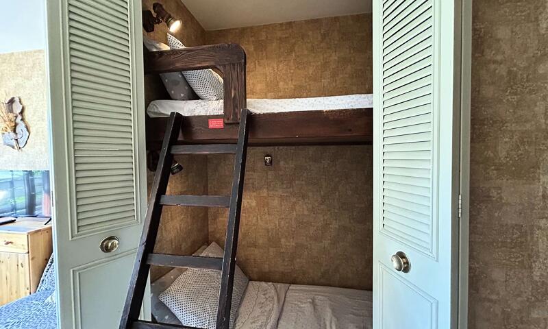 - un coin nuit avec deux lits superposés 1 personne , fermé par des portes en accordéon