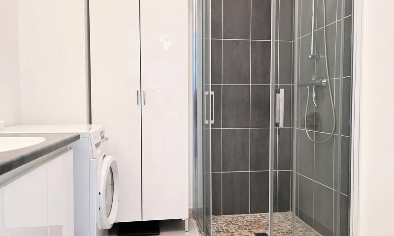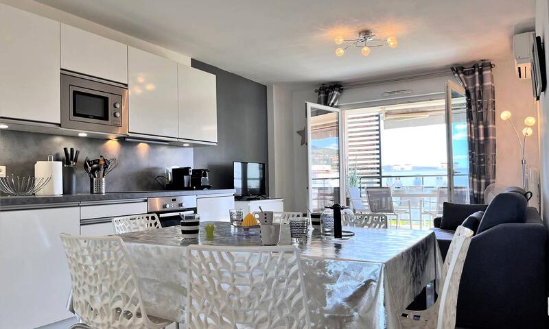 Cet appartement climatisé situé au 4ème étage avec ascenseur offre une grande terrasse, un séjour avec un canapé convertible, une cuisine ouverte sur le séjour, une chambre donnant accès sur la terrasse ainsi qu'une salle d'eau avec WC.