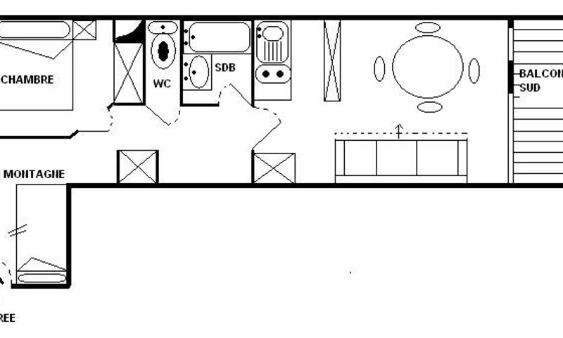 Il est situé au 4ème étage (sans ascenseur) et possède un balcon sud avec vue sur les pistes.