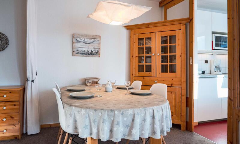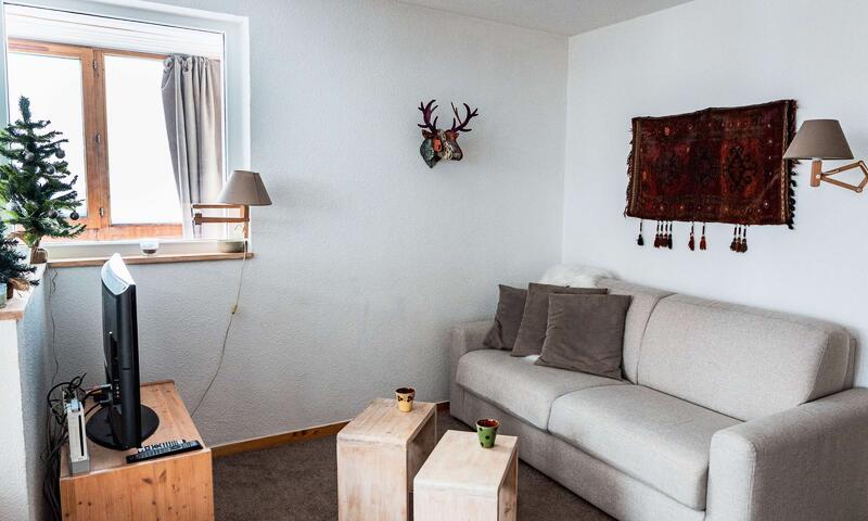 - Séjour équipé d'un canapé convertible 2 places (équipé de couette et d'oreillers), d'une télévision et d'un espace repas, avec baie vitrée donnant sur la vue sur le domaine skiable.