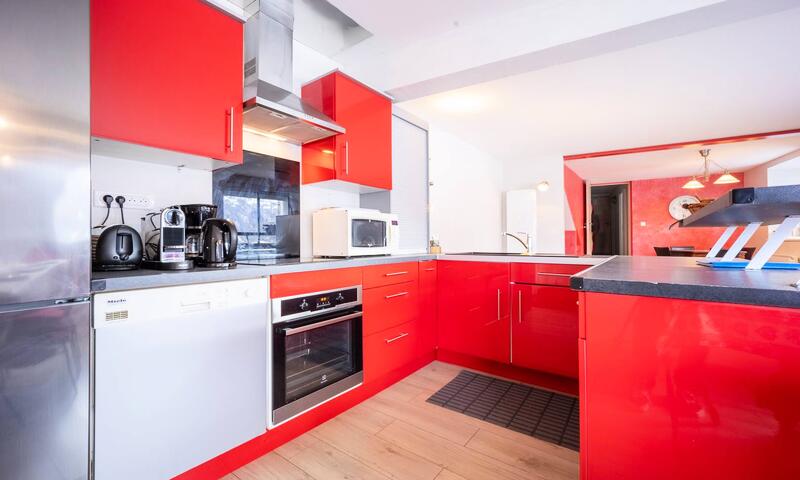 Grande cuisine équipée ouverte sur un séjour avec vue sur la vallée