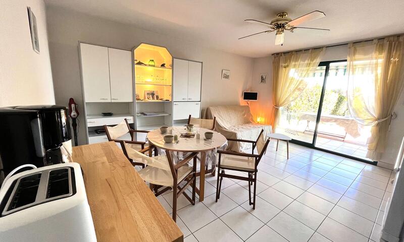 Ce joli studio/cabine, climatisé, est composé d'un séjour avec cuisine équipée et coin repas, une chambre cabine avec lit superposé et une salle d'eau avec WC indépendant.