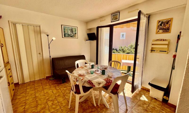 Il est composé d'un séjour avec canapé de type BZ pouvant accueillir deux personnes, coin cuisine équipée, ouvert sur une terrasse, une chambre avec deux lits en 80cm (soit un lit double en 160cm), une salle d'eau avec wc.