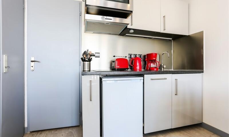 - Kitchenette toute équipée pour 2 personnes avec plaques vitrocéramiques, lave-vaisselle, four, réfrigérateur, cafetière, grille-pain et bouilloire.