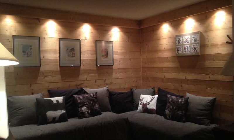 Séjour : TV, grand canapé d'angle pour 6 à 8 personne, table basse, coin salon donnant sur une grande terrasse avec accès direct aux pistes.