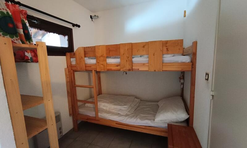 Chambre : 2 lits superposés en bas double (140 x 190) lit du haut (80x190), fenêtre avec volets, placard de rangement, penderie.
