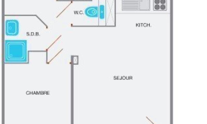Cet appartement de vacances au rez de chaussée, comprend un séjour avec un canapé convertible , un coin cuisine équipé avec lave-vaisselle, une  chambre avec 1 lit double, une cabine avec 2 lits superposés, une salle de bain et un WC indépendant. Balcon sud avec vue sur le domaine skiable.