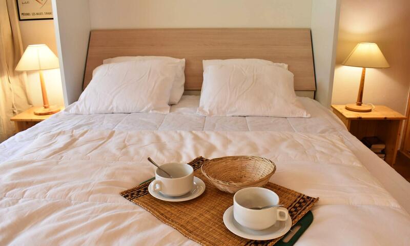 Cette location à la montagne, située au quatrième étage par ascenseur (+ 1 étage à pied), comprend une cuisine équipée donnant sur un séjour télévision (balcon ouest) avec 1 lit double, une salle de bain (lave-linge/sèche-linge), un wc indépendant;   à l'étage, une mezzanine avec deux lits simples (80) et un lit simple (90), 1 casier à skis (RDC haut). Une place de parking près de la résidence est possible sous réserve d'une place disponible.