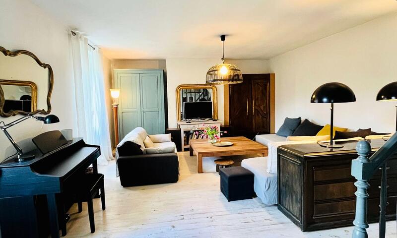 Table de cuisson au gaz, réfrigérateur-congélateur, four électrique, lave-vaisselle, micro-ondes, cafetière électrique, Nespresso, bouilloire, grille-pain. Table et chaises pour 4-6 personnes, téléviseur, internet Wifi. Canapés, jeux de société. Un lit 160x200 et un lit 140x190, rangements, oreillers et couettes. Lit parapluie pour bébé et chaise haute. Buanderie avec lave-linge et sèche-linge. Salle de bains avec baignoire et vasques. Terrasse, mobilier de jardin, parasol et barbecue.
