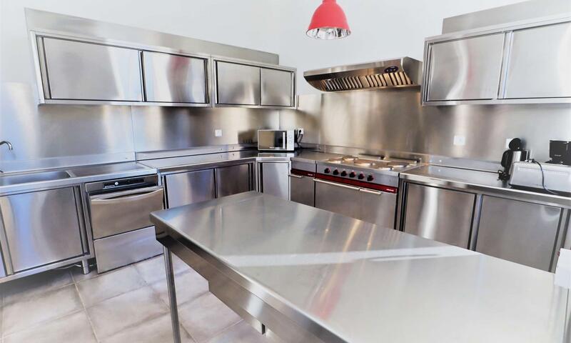 - une cuisine professionnelle complètement équipée tout inox (lave vaisselle, plonge, table de cuisson (feux électriques) et four....)