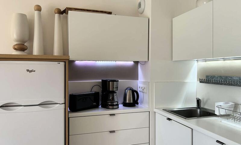 - Le coin cuisine a un lave-vaisselle, réfrigérateur, 4 plaques vitro céramiques, four traditionnel, cafetière électrique, bouilloire et grille-pain.