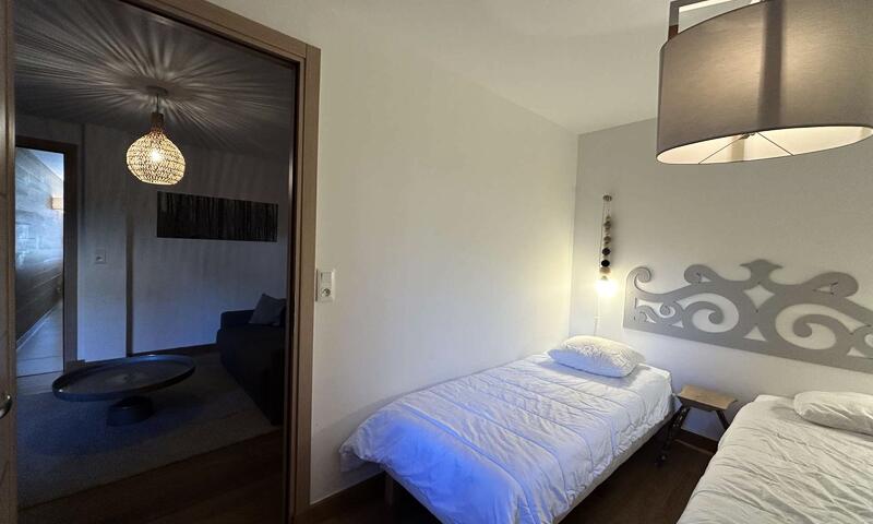 - Une chambre intermédiaire avec un canapé lit deux personnes, qui donne accès à une chambre avec 2 lits jumeaux d'une personne.