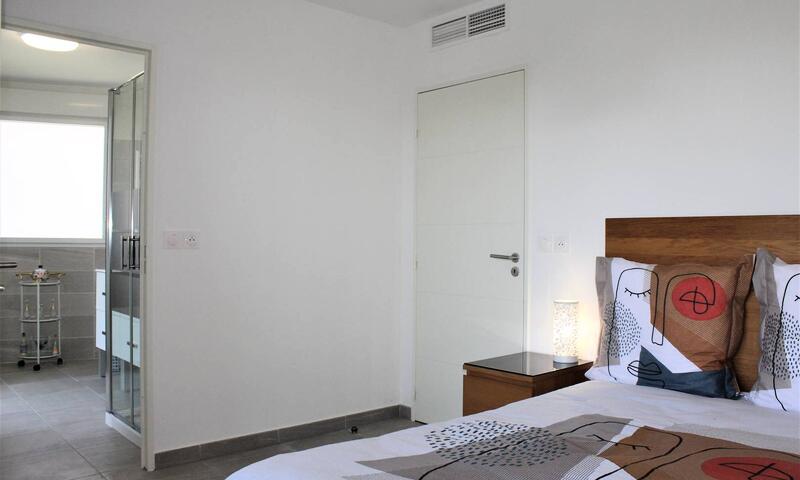 Bel et grand appartement neuf entièrement climatisé de 90 m² dans une résidence de standing avec aperçue mer au 3ème étage. A l'entrée un vaste hall avec couloir à droite le coin nuit avec une 1  ère chambre avec un lit double, (140x190) avec terrasse, une vaste salle de bain avec douche à l'italienne et toilette.