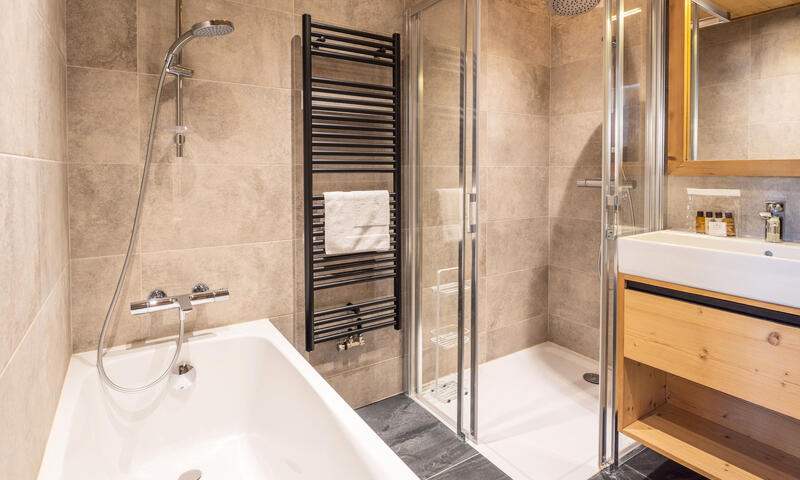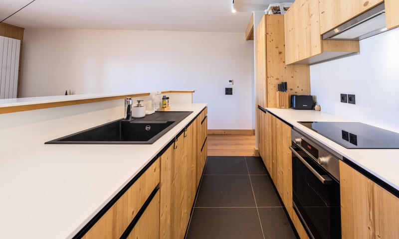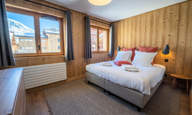 Nichée au cœur de la station et aux pied des pistes, cette résidence de prestige offre un espace bien-être et détente comprenant piscine, sauna et hammam. Cet appartement de 130m² accueille 4 adultes et 4 enfants.