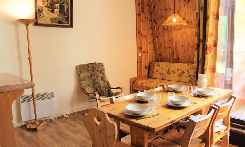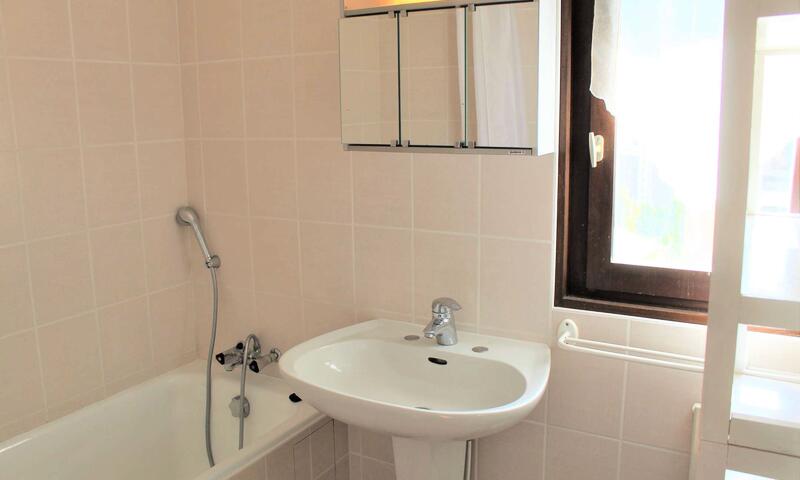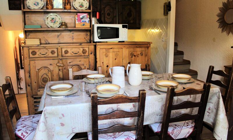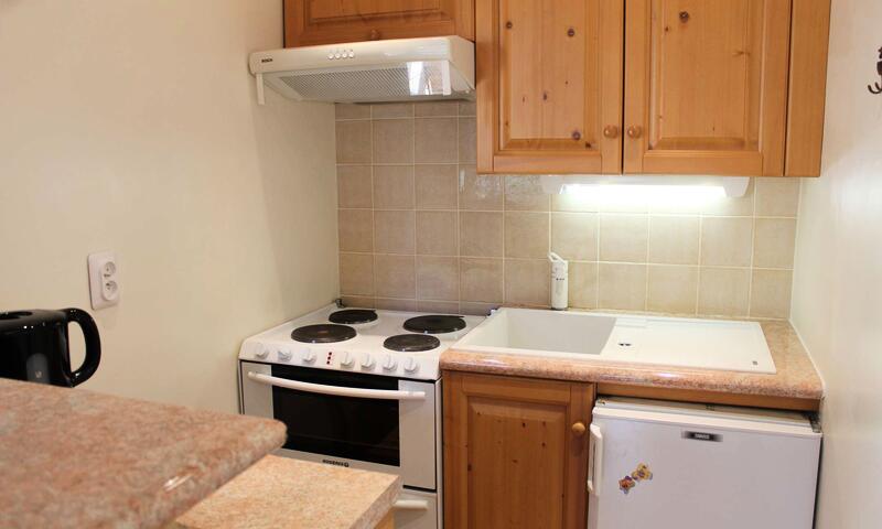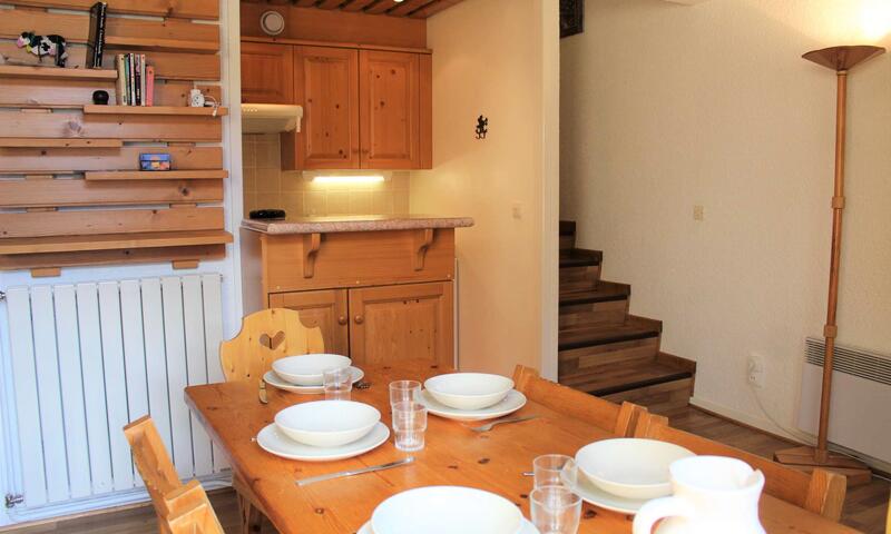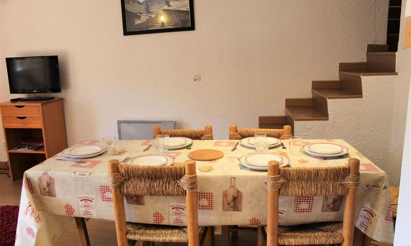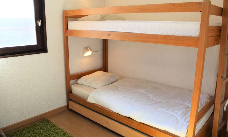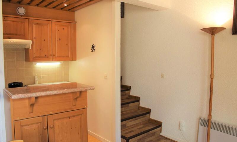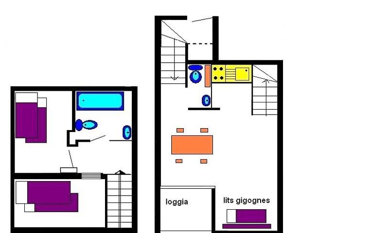 Cet appartement en duplex en station de ski se compose au 1er niveau, d'un coin cuisine équipé ouvert sur un séjour comprenant deux lits gigognes une place et d'un WC, ainsi qu'une loggia exposée Sud Est donnant vue sur les pistes. A l'étage cette location dispose d'une chambre avec deux lits superposés une place et d'une mezzanine ouverte sur le séjour (avec rideau de séparation) avec deux lits superposés une place (accès par une petite échelle), ainsi qu'une salle de bain avec baignoire et WC.