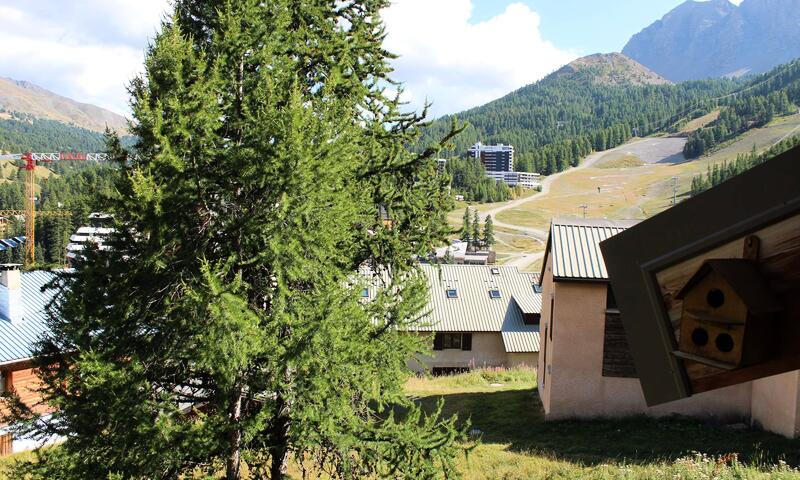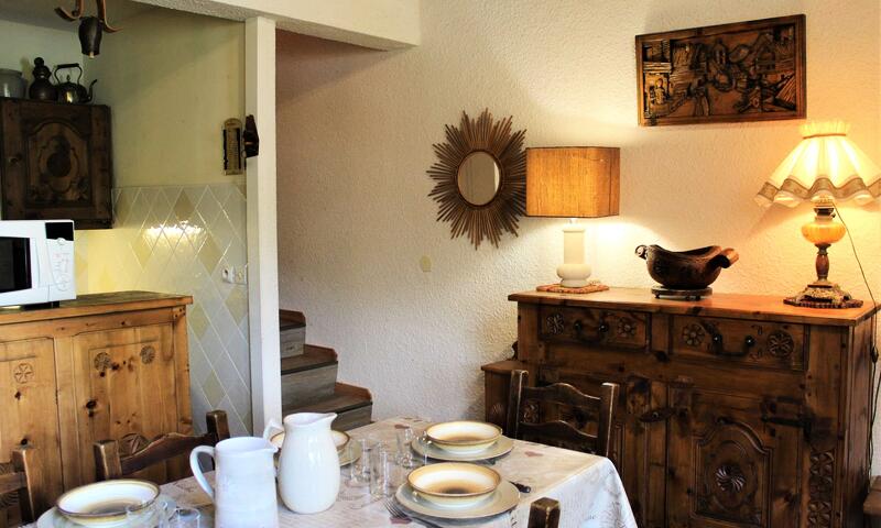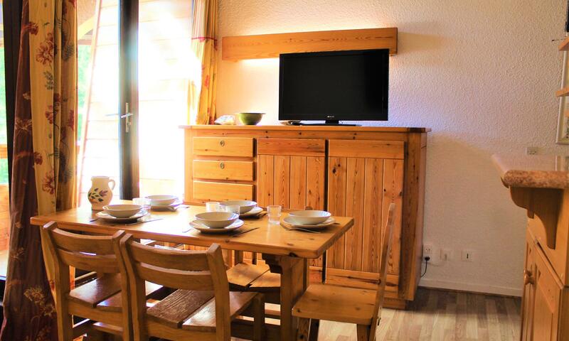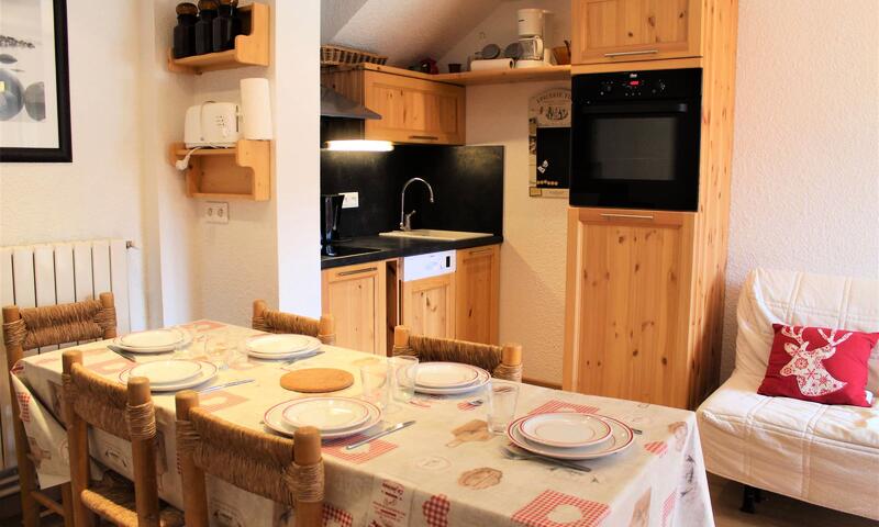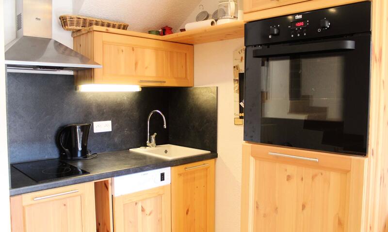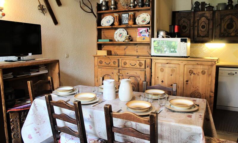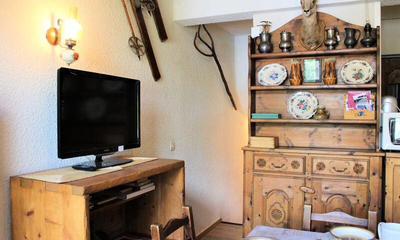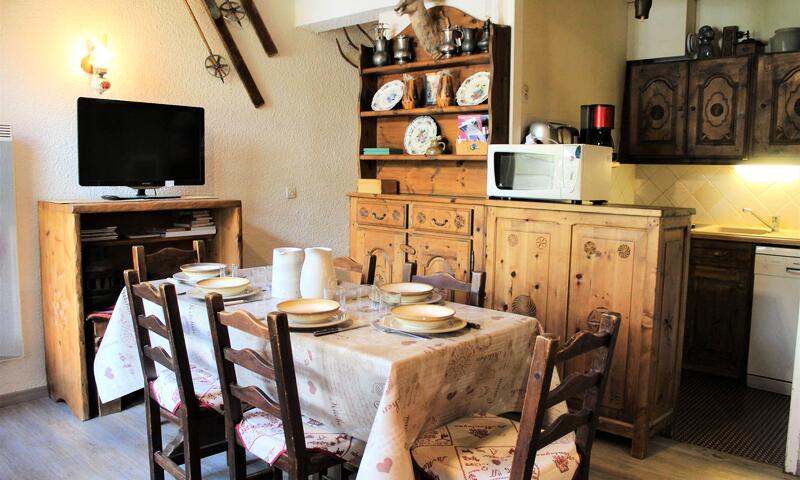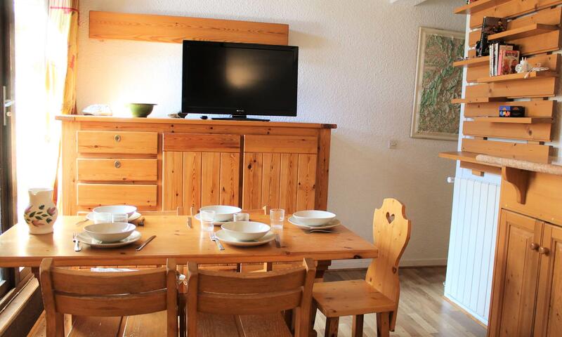 Cet appartement en duplex en station de ski se compose au 1er niveau, d'un coin cuisine équipé ouvert sur un séjour comprenant deux lits gigognes une place et d'un WC, ainsi qu'une loggia exposée Sud Est donnant vue sur les pistes. A l'étage cette location dispose d'une chambre avec deux lits superposés une place et d'une mezzanine ouverte sur le séjour (avec rideau de séparation) avec deux lits superposés une place (accès par une petite échelle), ainsi qu'une salle de bain avec baignoire et WC.