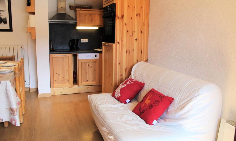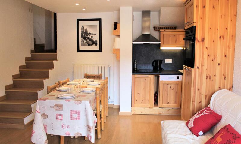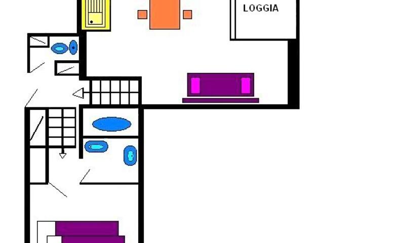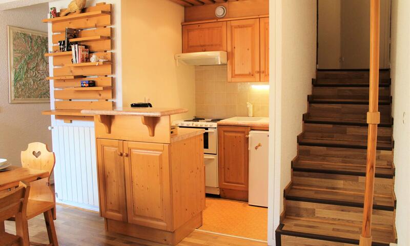Ce joli duplex en station de ski se compose à l'étage d'une chambre avec deux lits superposés une place et d'un lit tiroir une place (pour enfant UNIQUEMENT) d'une salle de bains avec baignoire et de WC indépendants. Au niveau inférieur vous disposez d'un cuisine équipée ouverte sur un séjour avec un canapé convertible pour deux personnes et d'une loggia exposée Sud Est donnant vue sur les pistes de ski.