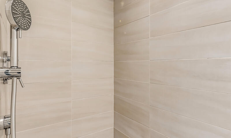 1 salle de bainsavec meuble vasque, radiateur sèche serviette, WC, douche à l'italienne.