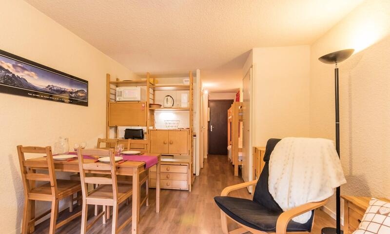 Ce charmant petit studio de montagne comprend : un coin montagne avec lits superposés, un séjour avec canapé convertible pour deux personnes, un coin cuisine équipé, une salle d'eau avec douche et un wc indépendant.