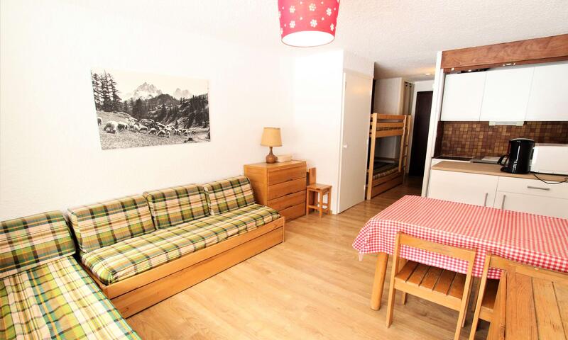 Ce charmant petit studio de 28m² comprend : un coin montagne avec lits superposés, un séjour avec 2 banquettes lits simples, un coin cuisine, une salle de bain et un wc indépendant.