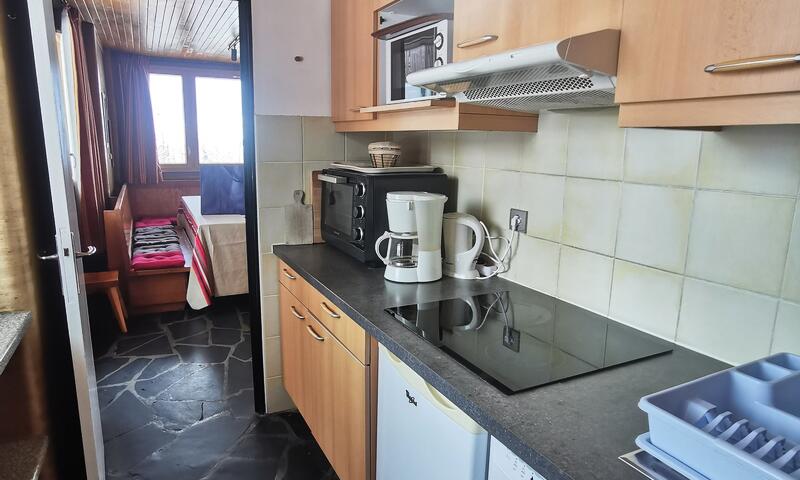 Appartement spacieux avec accès direct à la galerie commerciale de Plagne Centre. Avec balcon exposition Ouest et vue sur les pistes, il se compose d'un grand séjour avec 1 lit gigogne pour 2 personnes, et un lit simpleTV écran plat.