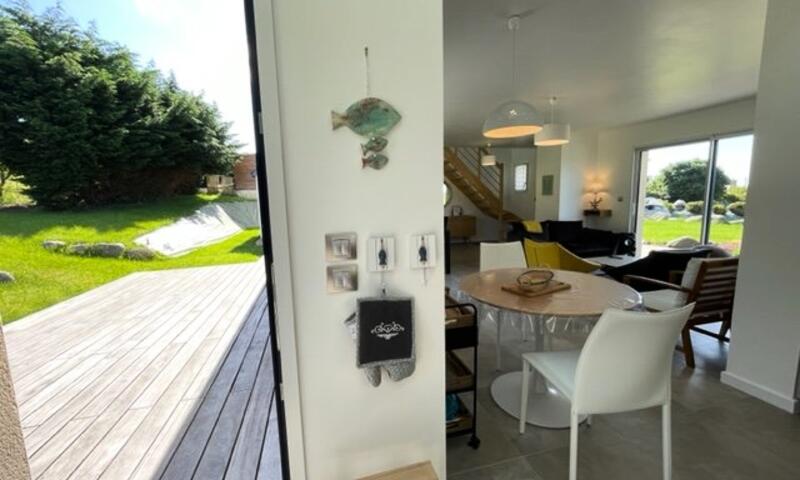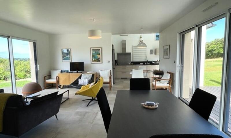 Maison récente classée 3 étoiles pour 6 personnes. Belles prestations et cadre reposant à Trégastel sur la Côte de Granit Rose. La maison fait 105 m² comprenant une entrée sur séjour-salon, une cuisine ouverte, une chambre avec sa salle d'eau, toilettes avec lave-main. A l'étage : deux chambres, deux salles d'eau et des toilettes. Terrasse côté jardin, jolie vue sur la campagne. Garage et parking privé. Internet (box Travel Wifi). Logement non fumeur, animaux non acceptés, linge en option. ménage final inclus.