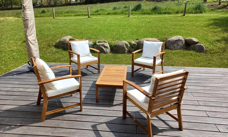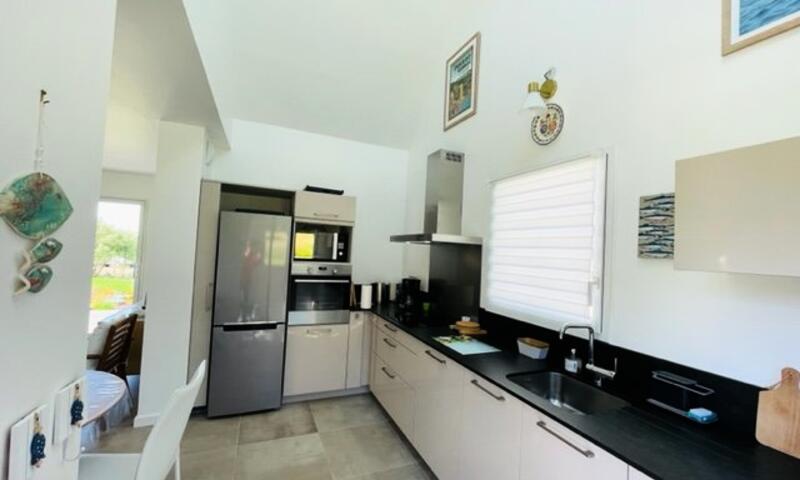 Table de cuisson induction, four électrique, four à micro-ondes, réfrigérateur-congélateur, vaisselle et couverts, cafetière électrique, lave-vaisselle, grille-pain, bouilloire, télévision, canapé et fauteuils, box internet 4G, tables et chaises pour les repas, 2 lits 160x200 cm, 2 lits 80x200 cm (jumelables), espace de travail (chambre rdc), mobilier de jardin, grand parasol et barbecue. Lave-linge dans le garage attenant.