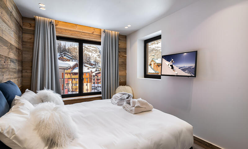 Au 3ème étage, proche des commodités et des pistes, ce merveilleux appartement de 135m² décoré de vieux bois et de matériaux de luxe, avec une terrasse de 20m², peut accueillir 6 adultes et 3 enfants.