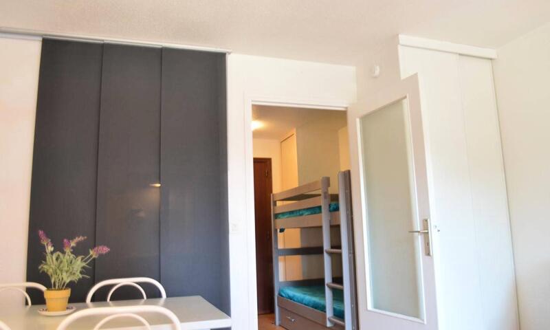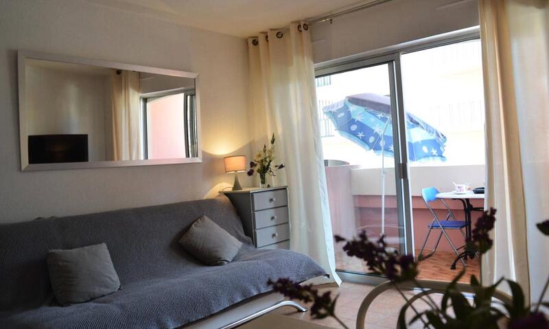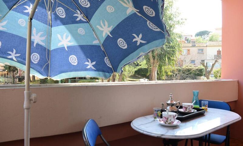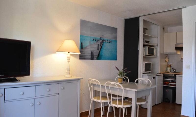 Le logement : Il est situé dans la résidence La Palmeraie, en rez de chaussée surélevé et se compose d'une entrée avec deux lits une place superposés, une salle d'eau avec wc, un séjour avec un convertible clic clac deux places, un coin cuisine équipé, une terrasse.