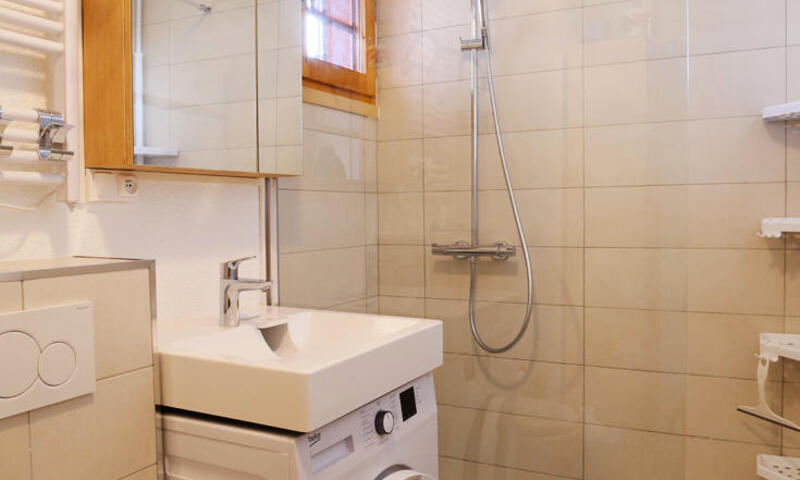 Salle de bains avec douche à l'italienne, WC inclus et lave linge.