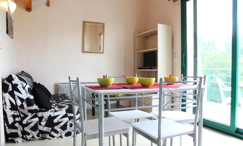 Il est au 3ème étage et se compose d'un séjour avec un canapé convertible offrant un couchage pour deux personnes, un coin TV pour se détendre, un grand balcon avec salon de jardin aménagé pour y déjeuner en toute tranquillité, un coin cuisine équipée (plaques, frigo, microondes), une chambre en mezzanine avec un lit deux places, une salle d'eau et un WC indépendant.