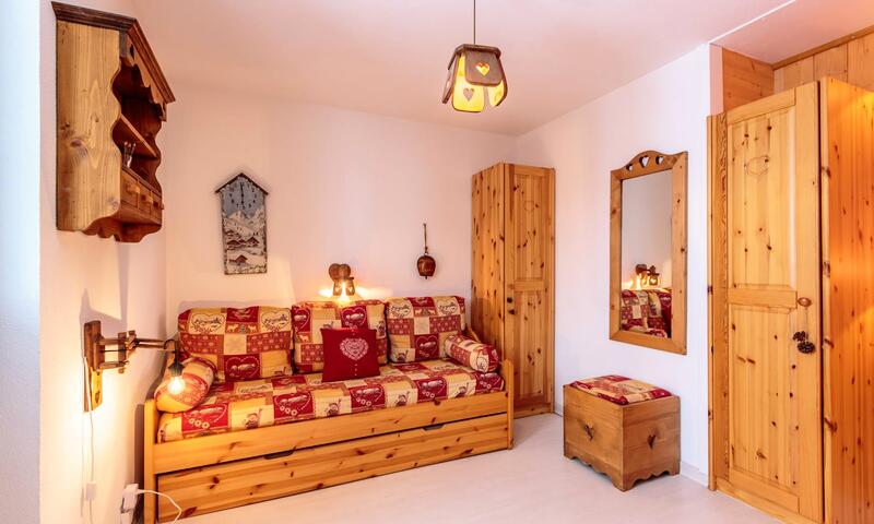 Appartement 2 pièces, 5 pers.,31m2, balcon exposé Est, vue sur le Mont Blanc et la vallée - 1er étage sans ascenseur - Cuisine : dans séjour : 2 plaques électriques, four mixte, réfrigérateur, lave-vaisselle. Séjour : 2 lits gigognes., T.V. - Chambre 1 : 2 lits superposés + 2 lits gigognes - Salle de bains : baignoire - WC inclus. Literie : couettes - Appartement non fumeur. En option et en supplément: Ménage de fin de séjour, draps, serviettes, forfaits ski.