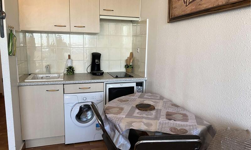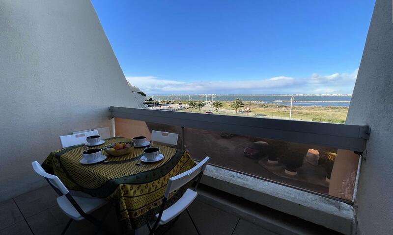 Ce logement se situe dans le quartier plage nord de Port Camargue, près de la capitainerie, au deuxième étage de la résidence "La Trinquette". Il se compose d'un séjour avec canapé convertible en 140 cm et télévision, d'un coin cuisine avec réfrigérateur-congélateur, micro ondes, deux plaques vitrocéramiques, lave-linge, une salle de bain avec douche et wc, un balcon de 5 m2 vue mer orienté nord.