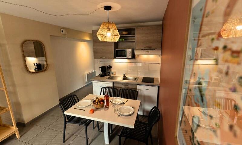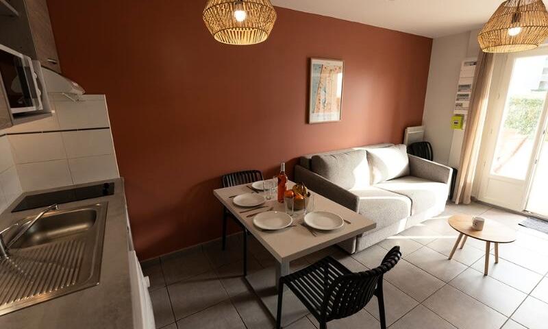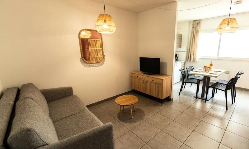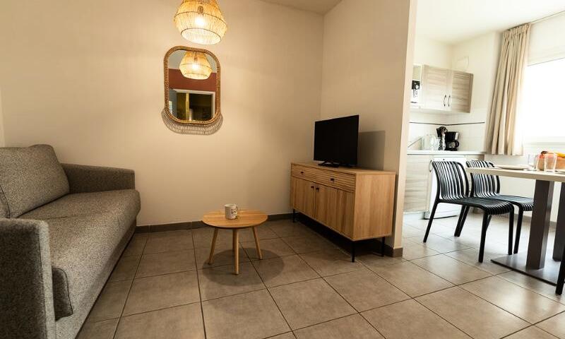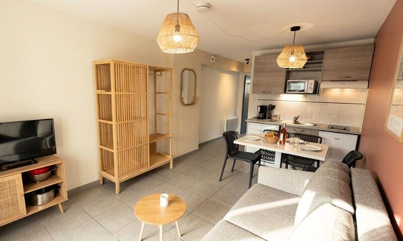 Cet appartement de 29 m² environ(*) avec balcon ou terrasse, est composé d'une chambre avec lit double (160x200), un salon avec 1 canapé convertible 2 personnes (140x190), d'une kitchenette équipée avec lave-vaisselle, une salle d'eau avec douche, lavabo, WC et lave-linge. La télévision et le WiFi (pour 1 seul et même appareil) sont offerts.