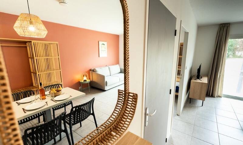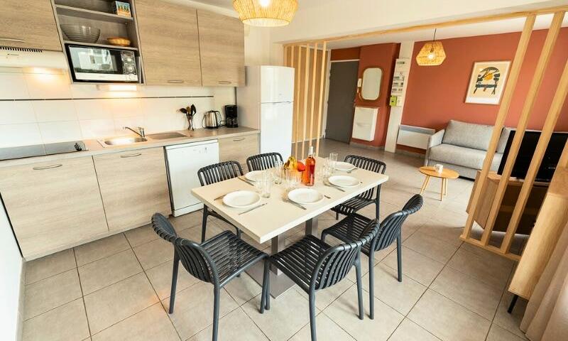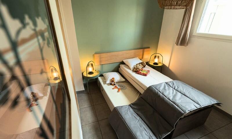 Appartement de 39 m² environ(*) avec balcon ou terrasse, composé d'une chambre avec lit double (160x200), une chambre avec 1 lit simple (70x190) et 1 lit gigogne (70x190), un salon avec 1 canapé convertible 2 personnes (140x190), une kitchenette équipée avec lave-vaisselle, une salle d'eau avec douche, lavabo, WC et lave-linge. La télévision et le WiFi (pour 1 seul et même appareil) sont offerts.