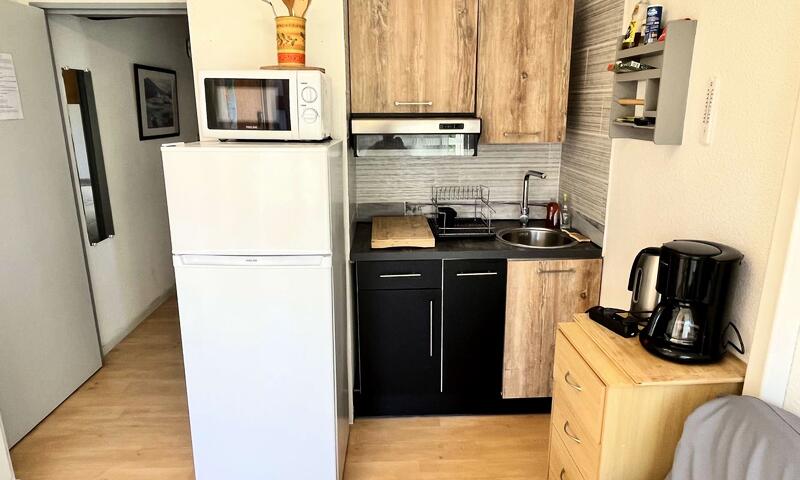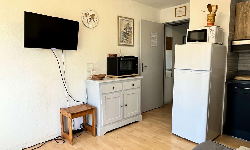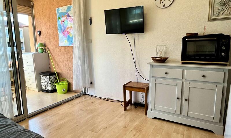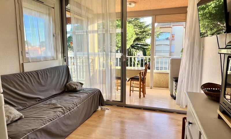 Cette location dans le sud ,située au deuxième étage, exposée Sud/Est, se compose d'un séjour avec canapé convertible 2 places , une cabine avec un lit deux places,un coin cuisine équipé, une salle d'eau avec WC.