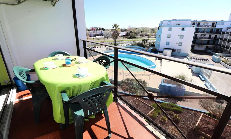 Résidence LAGON BLEU- Piscine, climatisation, plage à 650M, centre commercial à 150m, agréable studio/cabine au 3ème étage avec ascenseur.Il se compose d'une double cabine avec lits superposés pour 2 personnes et lits mezzanine pour 4 personnes  et  , salle d'eau avec douche, lavabo, W.C. indépendant, séjour avec kitchenette équipée, banquette lit, une baie vitrée donne sur un agréable terrasse, belle vue piscine.