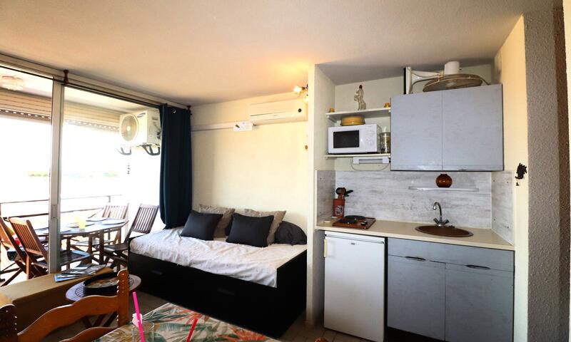 Résidence LE LAGON BLEU - Idéalement situé dans une résidence calme avec piscine, cet agréable studio double cabine pour une famille de 4 personnes, se trouve à seulement 650m de la plage et à 200m des commerces. Il est situé au 2ème étage, accessible par ascenseur, offrant ainsi confort et praticité.