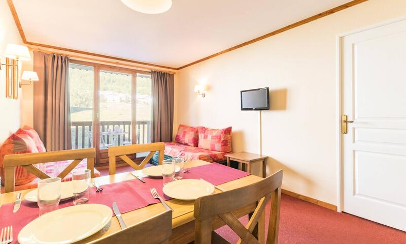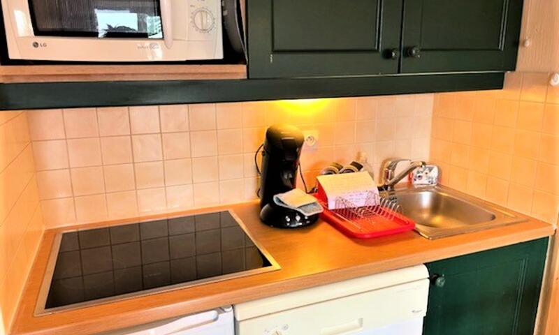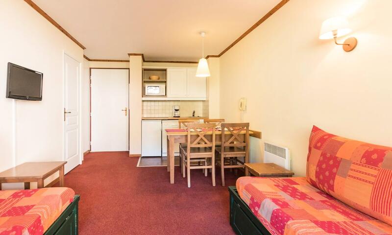 Cette location de vacances au ski comprend une chambre avec lit double, un séjour avec canapé-lit gigogne pour deux personnes et un lit simple. Le séjour dispose également d'une télévision et d'un accès au balcon exposé sud/ ouest. La cuisine est équipée d'un lave-vaisselle, d'un four micro-ondes et de 4 plaques électriques.  La salle de bains et les WC sont séparés.