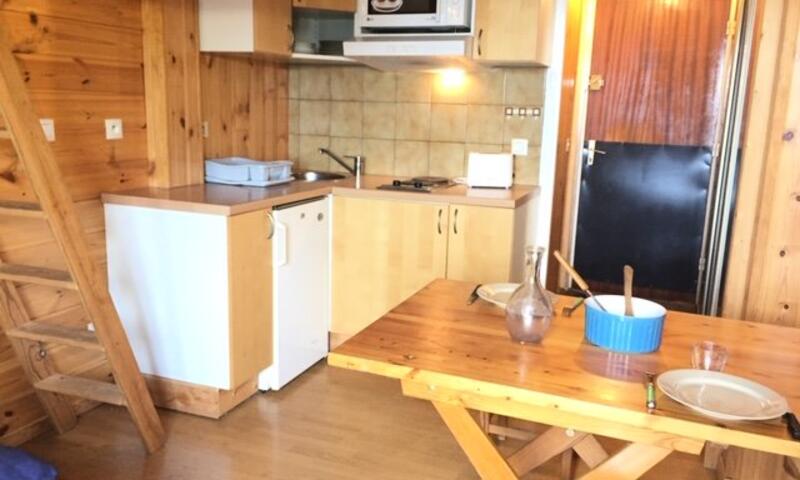 Situé sur le secteur du front de neige, l'appartement se compose d'un séjour avec un canapé convertible pour 2 personnes, d'un coin nuit avec un lit simple séparé de la pièce à vivre par un rideau, et d'une cuisine bien équipée. Il dispose aussi d'une salle de bain avec un lave-linge. Les WC sont indépendants. Cet appartement offre une vue station avec une exposition Nord.
