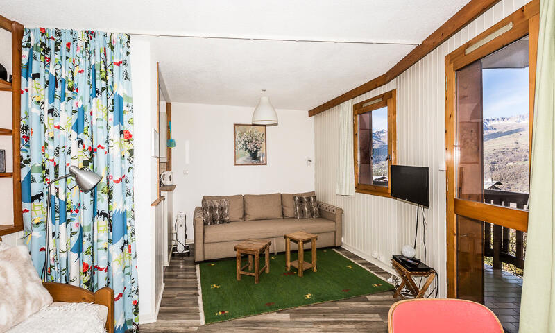 Studio équipé pour 3 personnes d'environ 22 m², entièrement rénové, exposé nord/ouest avec balcon, côté vallée et pistes au niveau -1.