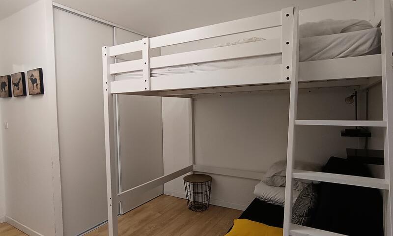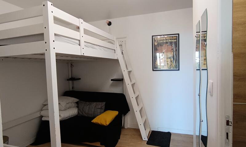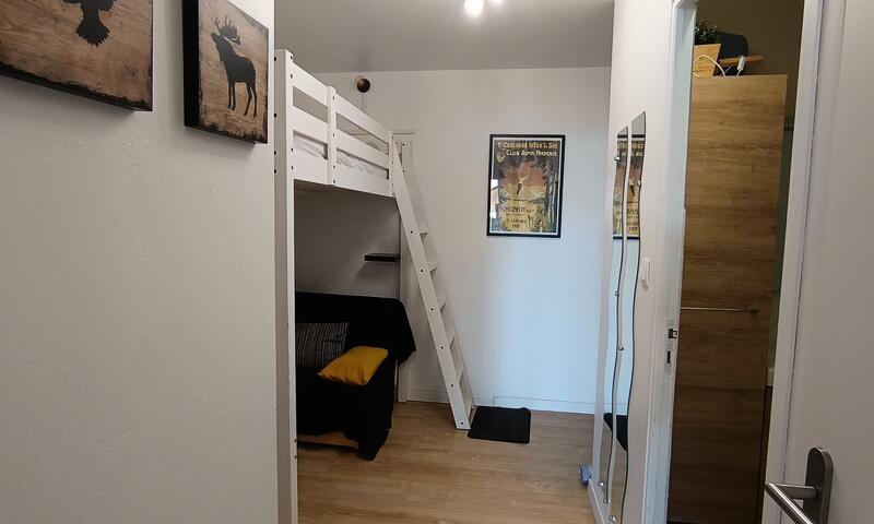 L'entrée s'ouvre sur le grand coin montagne, équipé d'un lit en mezzanine et dessous d'un canapé lit. Grand placard penderie, patères à vêtements.