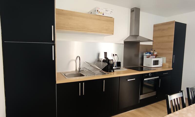 Cuisine entièrement équipée, réfrigérateur avec compartiment congélateur, lave-vaisselle, plaque à vitrocéramique 4 feux, four, micro-ondes, cafetière, grille-pains, bouilloire, robot électrique, mixeur plongeant, appareil à raclette, nombreux accessoires et ustensiles de cuisine.