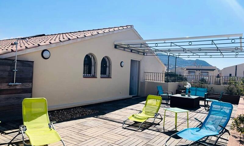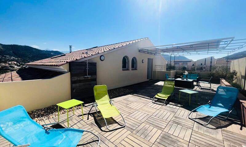Cet appartement avec toit terrasse décoré avec gout est idéalement situé pour passer des vacances exceptionnelles en famille ou entre amis, à moins de 15 minutes à pied de la plage de l'Ile Rousse.