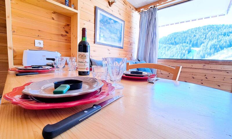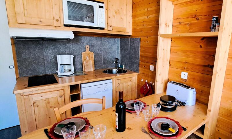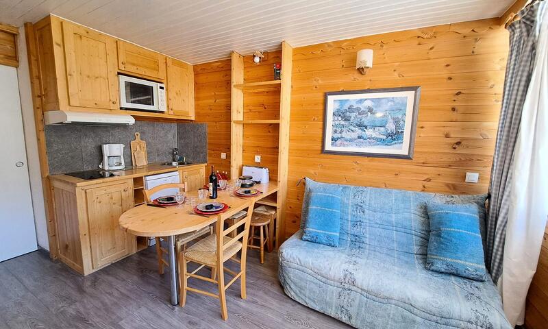 Entrée, coin-montagne avec 2 lits superposés en 70/180 pour enfants jusqu'à environ 8 ans,  salle de bains avec W-C, séjour ouvrant sur balcon avec canapé convertible pour 2 personnes, télévision, coin-cuisine équipé (frigo, plaques de cuisson, four, lave-vaisselle, micro-onde, cafetière à filtre), box à skis.