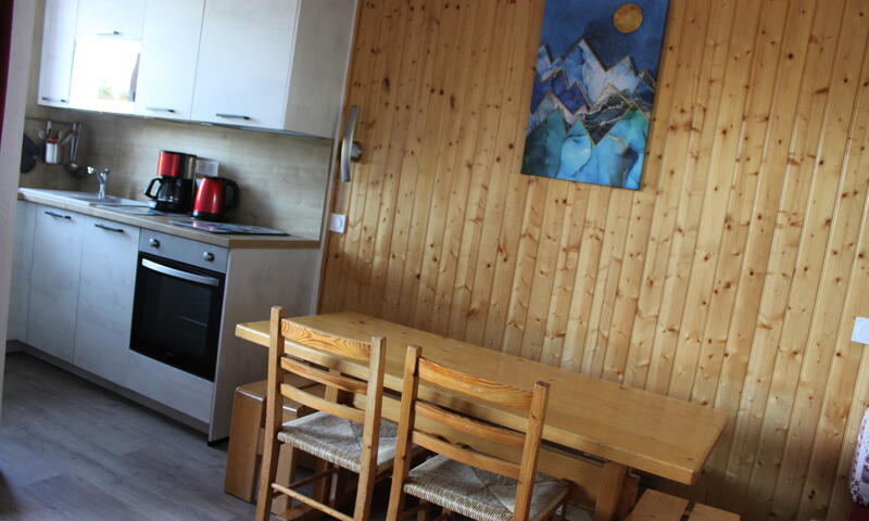 Ce deux pièces avec une jolie vue sur la vallée et les montagnes se compose d'une kitchenette équipée entièrement rénovée en 2024 (de plaques vitrocéramiques, four, lave-vaisselle, micro-ondes, cafetière, grille pain, réfrigérateur avec partie congélateur), d'une salle de douche et d'un wc séparé, d'une chambre comportant deux lits simples, d'un salon disposant de deux banquettes lit simple et un lit tiroir.