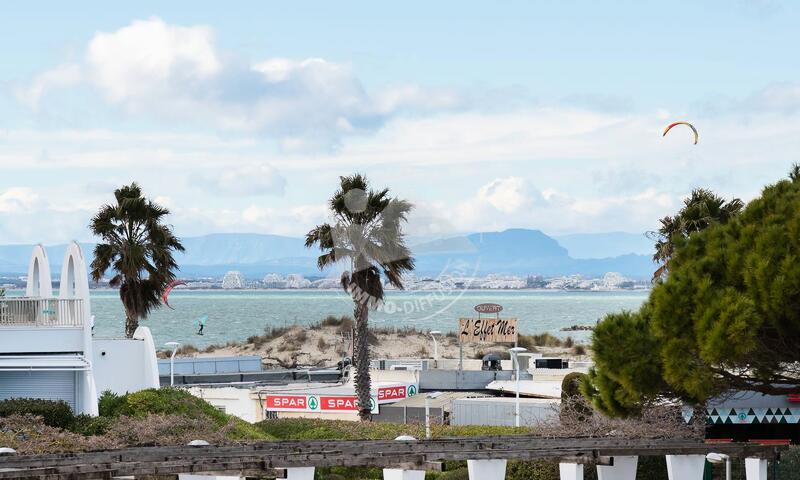 PORT CAMARGUE - Résidence de standing direct sur la Plage Sud, Studio Cabine refait entièrement à neuf, au 2 ème étage composé d'un séjour ouvert sur grande terrasse de 21m² avec magnifique vue mer, lit armoire et climatisation, une cabine avec lit superposé (2x90 cm), une cuisine entièrement équipée lave-vaisselle, micro-ondes, frigo /congélateur, four, lave-linge. Salle de bain et wc séparé. A  proximité du centre commercial, Thalassothérapie, activités nautiques et transport. Parking privé et sécurisé. Équipé pour 4 personnes. Animaux non admis.
